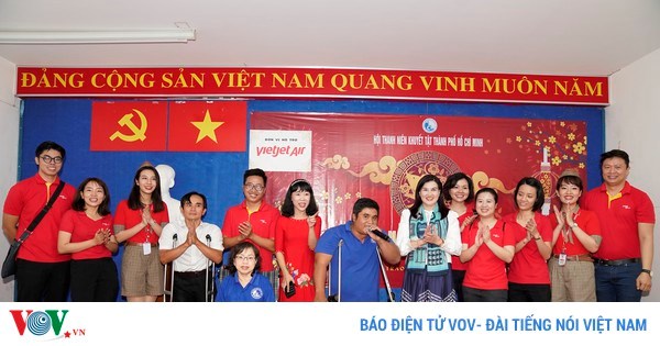 VOVVN - VOV.VN - Sáng 18/1, hãng hàng không Vietjet đã tới thăm, chúc tết Hội Thanh Niên Khuyết Tật TP.HCM.