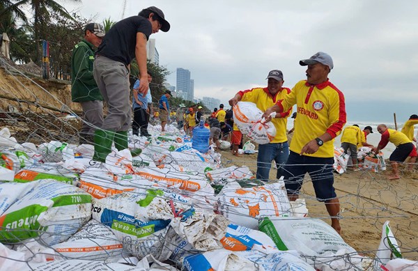 VOVVN - VOV.VN - Những ngày qua, thành phố Đà Nẵng huy động hơn 200 người khẩn trương làm kè tạm bằng bao cát, ngăn không cho sóng biển tiếp tục tàn phá bờ biển Mỹ Khê,...