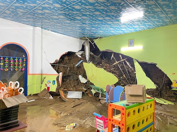 Trường học ở Nam Trà My (Quảng Nam) bị sập tường vì mưa lớn, sạt lở đồi