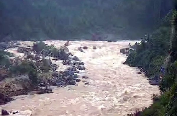 Dùng ròng rọc cứu 4 người mắc kẹt giữa dòng nước lũ