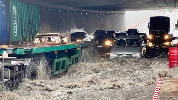 Hầm chui Nguyễn Văn Linh - Nguyễn Hữu Thọ ở TP.HCM bị ngập