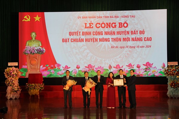 VOVVN - VOV.VN - Chiều nay (24/10), UBND tỉnh Bà Rịa – Vũng Tàu tổ chức lễ đón nhận huyện Nông thôn mới nâng cao đối với huyện Đất Đỏ. Đảng bộ, chính quyền và nhân dân...