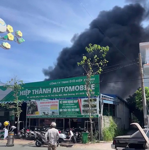 Cháy gara ô tô ở Bình Dương, khói đen bốc cao hàng chục mét