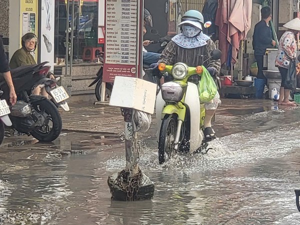 TP.HCM mưa dông diện rộng, người dân đội mưa đi làm