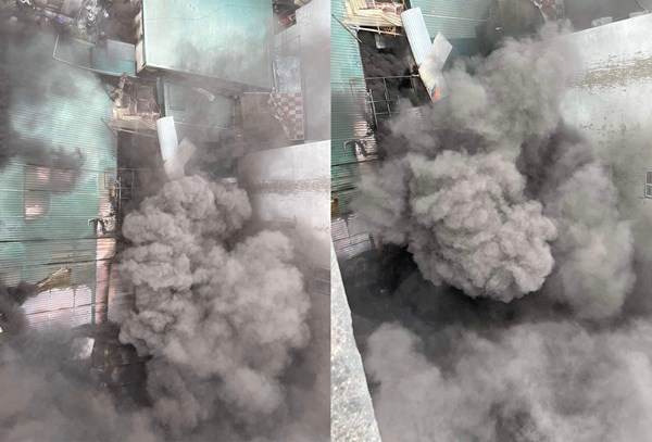 Cháy 200m2 nhà kho chứa vải ở đường Trần Bình, Hà Nội