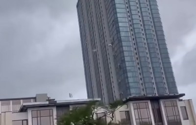 Cửa kính toà cao ốc ở Hạ Long bay như "lá vàng rơi" trong bão số 3