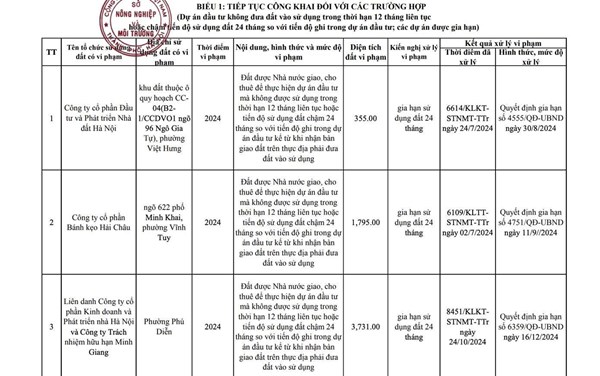 Hà Nội bêu tên 17 chủ đầu tư vi phạm về đất đai trên địa bàn