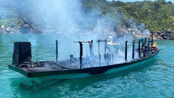 Một chiếc ghe chở 3 người bốc cháy trên biển Cù Lao Chàm