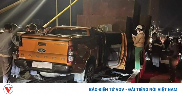 VOVVN - VOV.VN - Vụ tai nạn xảy ra giữa 2 ô tô lưu thông cùng chiều trên cầu Bãi Cháy. Xe bán tải chạy sau đã không kiểm soát được tốc độ và đâm vào đuôi...