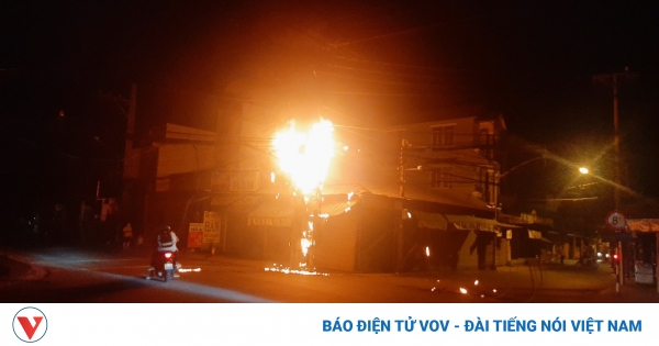 VOVVN - VOV.VN - Tối nay 29/8, tại thành phố Mỹ Tho (Tiền Giang) đã xảy ra một vụ cháy trụ điện, rất may đám cháy được khống chế không để lan ra khu đông dân cư.
