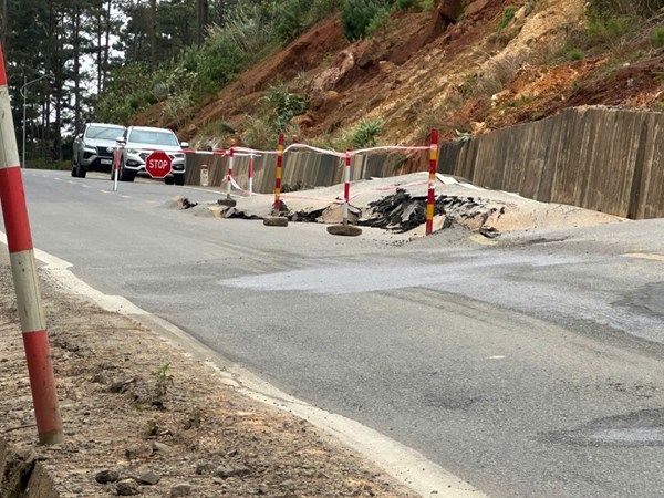 Mặt đường Quốc lộ 24 qua xã Măng Đen tỉnh Quảng Ngãi xuất hiện vết nứt dài 100m