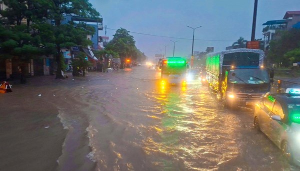 VOV.VN - Ảnh hưởng của bão số 5, cơn mưa lớn kéo dài không ngớt khiến nhiều tuyến phố Hà Nội ngập sâu như...