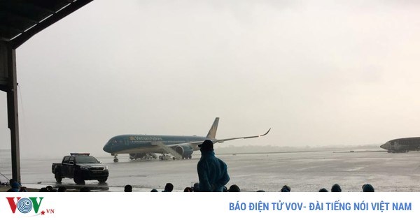 VOVVN - VOV.VN -Máy bay của Vietnam Airlines đã đến sân bay Bata của Guinea Xích đạo, 219 công dân Việt Nam đã chuẩn bị quần áo bảo hộ và lên đường về nước.