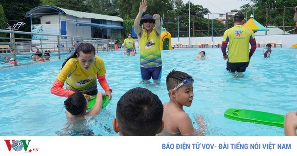 VOVVN - VOV.VN -Lớp dạy bơi miễn phí cho trẻ em cơ nhỡ tại Hồ bơi Công viên Lê Thị Riêng, quận 10, TPHCM vào các buổi sáng cuối tuần lúc nào cũng đầy ắp niềm vui.