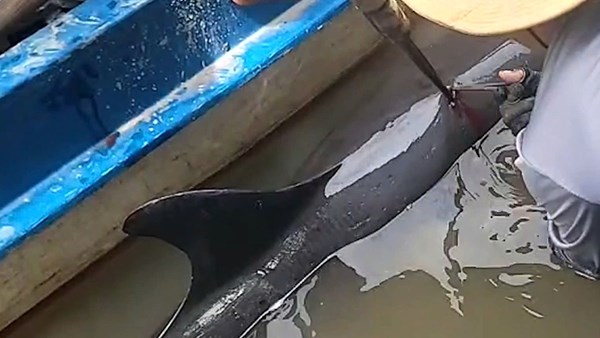 Người dân Cà Mau giải cứu cá heo bị đâm khi vào sâu trong đất liền