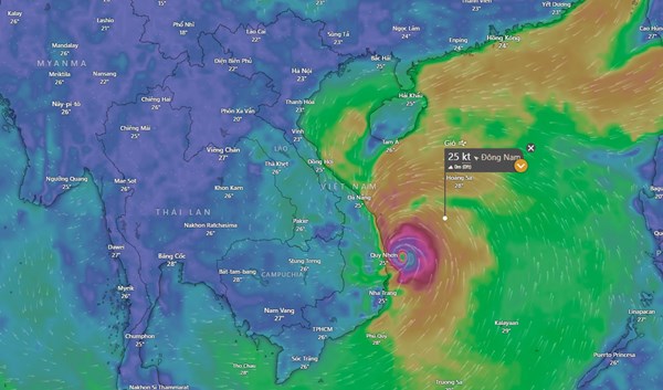 Thời điểm nào bão Kalmaegi đi vào đất liền Việt Nam?