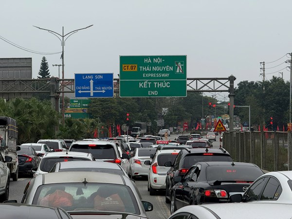 Ùn tắc kéo dài tại cao tốc Hà Nội - Thái Nguyên mùng 2 Tết