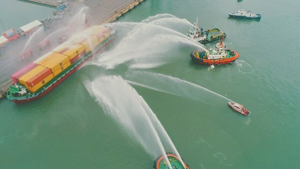 Diễn tập tình huống cháy tàu contaier, tai nạn liên hoàn tại cụm cảng Cái Mép