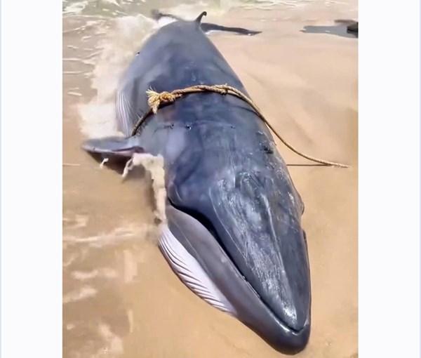 Cá Ông nặng hơn 1 tấn trôi dạt vào bãi biển ở Ninh Thuận
