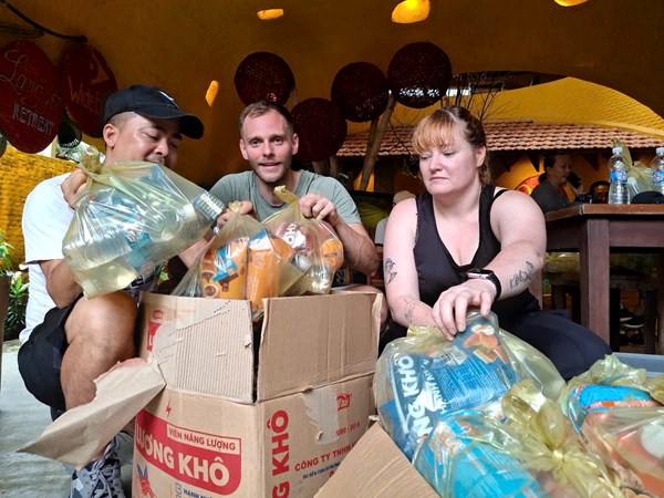 Du khách nước ngoài ủng hộ tiền, hàng giúp người dân vùng lũ Hội An