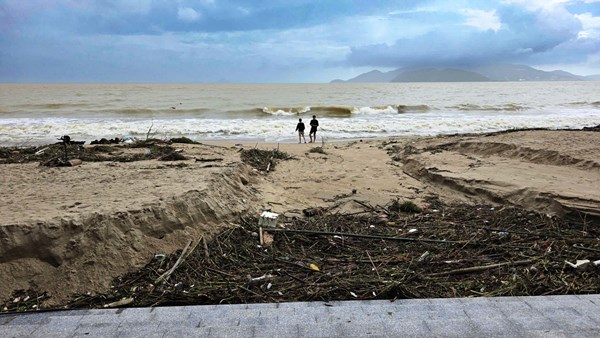 Khối lượng rác khổng lồ dạt vào bãi biển Nha Trang