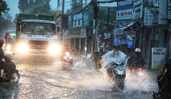 VOVVN - VOV.VN - Trận mưa lớn kéo dài hơn 1 giờ vào sáng sớm nay (10/5) làm nhiều tuyến đường ở TP.HCM ngập sâu.