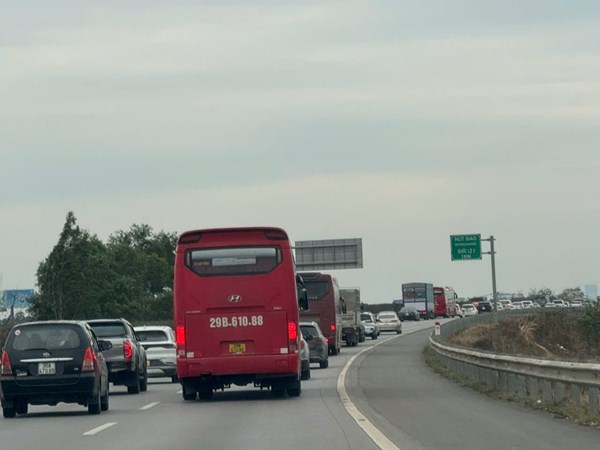 Dòng ô tô ùn ùn nối đuôi nhau trên cao tốc trở về Hà Nội sau kỳ nghỉ Tết Ất Tỵ