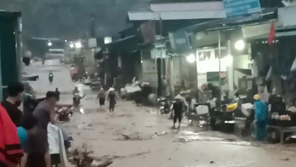VOVVN - VOV.VN - Trận mưa lớn kéo dài trong hơn 20 phút xảy ra tối 25/3 đã làm tuyến đường ở khu vực chợ trung tâm xã vùng cao Co Mạ, huyện Thuận Châu, tỉnh Sơn...