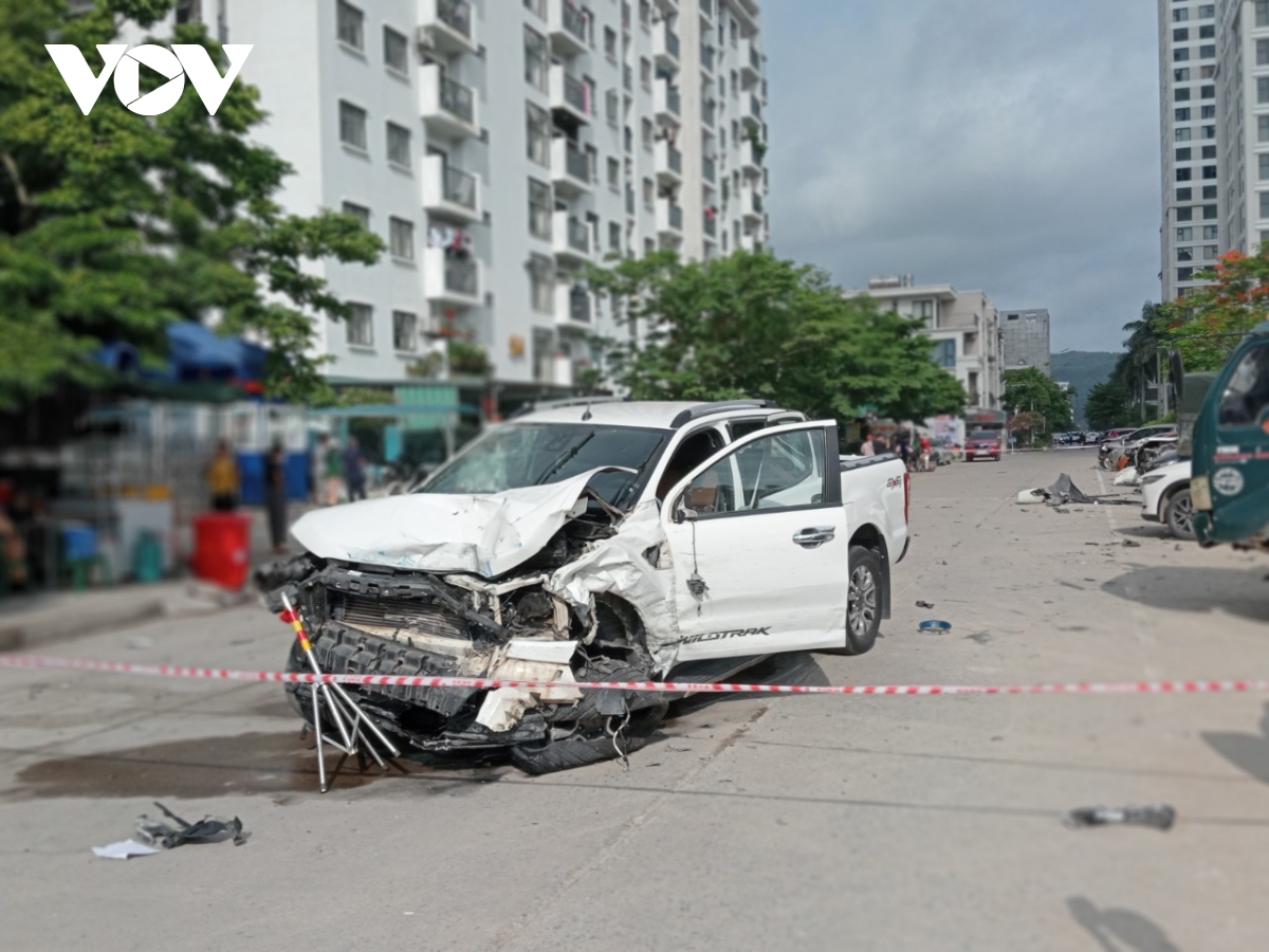 VOV.VN - Khoảng 5h30 sáng 29/5, một xe bán tải đâm liên tiếp hàng loạt ô tô đang đỗ tại khu vực để xe phía sau 1 chung cư thuộc phường Hùng Thắng, thành phố Hạ Long, tỉnh Quảng Ninh.