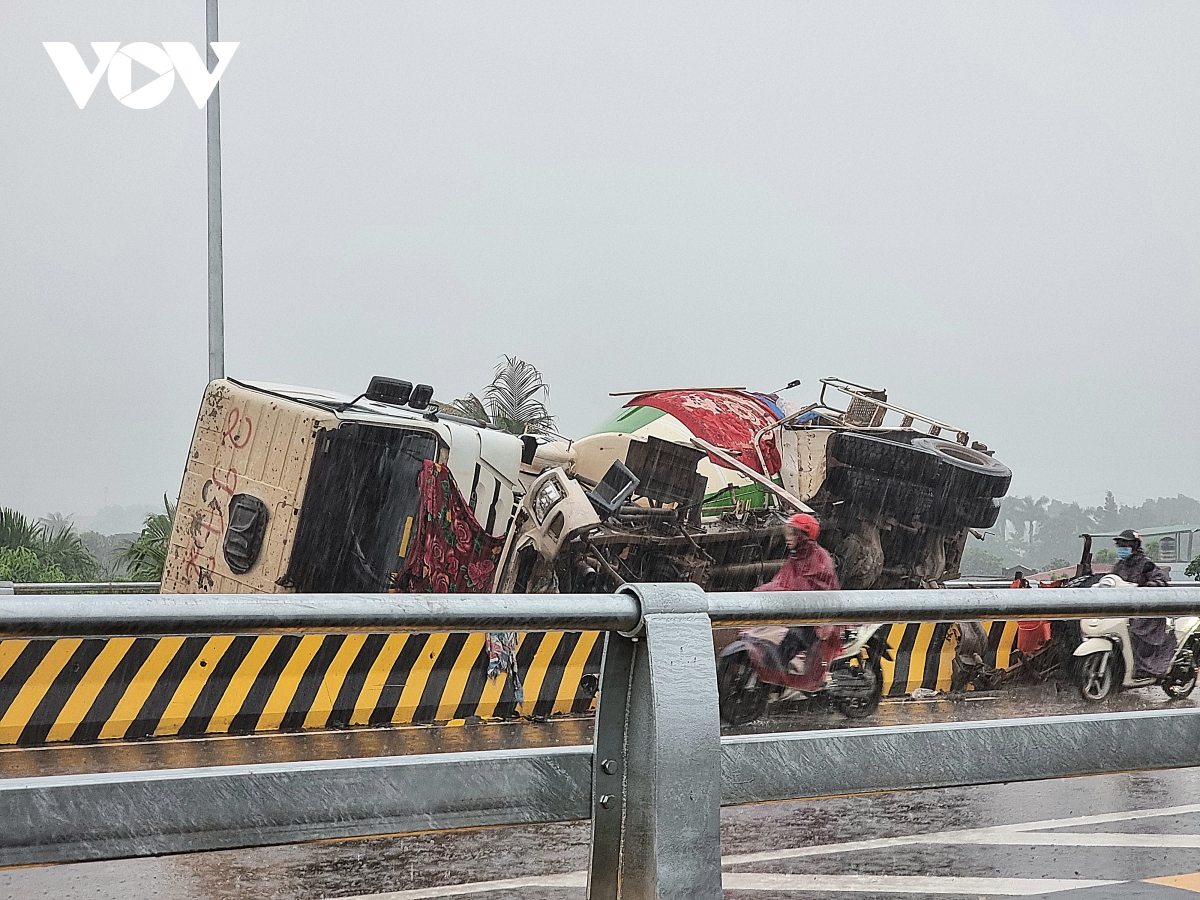 "Hậu quả là chiếc xe bồn bị lật nghiêng, không có hậu quả về người, tuy nhiên xe đã bị hư hỏng nặng. Ngay sau khi sự việc xảy ra đơn vị đã có mặt tại hiện trường để điều tiết phân luồng giao thông, tránh xảy ra ùn tắc trên tuyến đường"- đại diện Đội Tuần tra kiểm soát, Phòng Cảnh sát giao thông thông tin.