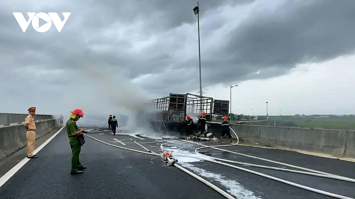 VOV.VN - Chiều 23/10, trên cao tốc Đà Nẵng – Quảng Ngãi, xảy ra vụ cháy xe tải, rất may không thiệt hại về người.