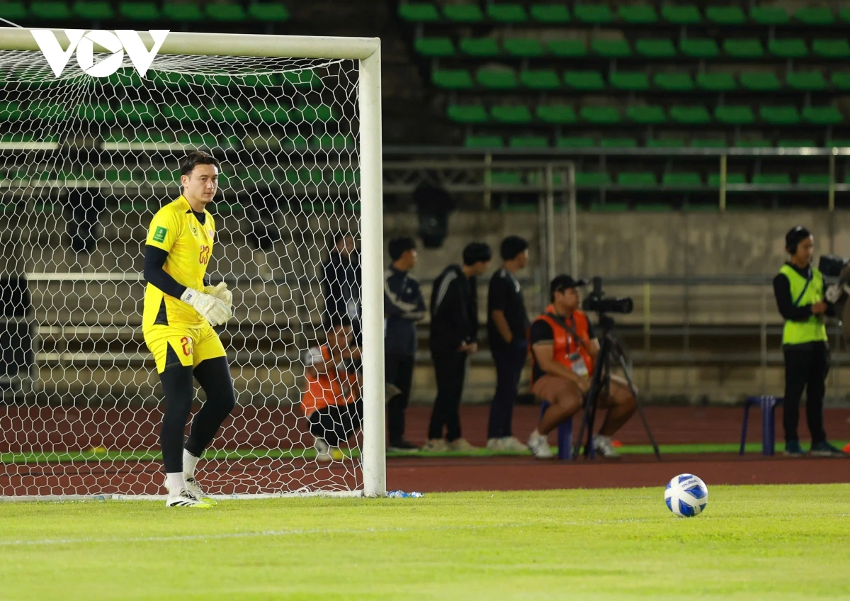 87': KHÔNG VÀO !!! Damoth Thongkhamsavath tung cú dứt điểm từ ngoài vòng cấm địa khiến thủ môn Văn Lâm phải vất vả đấm bóng cứu thua.