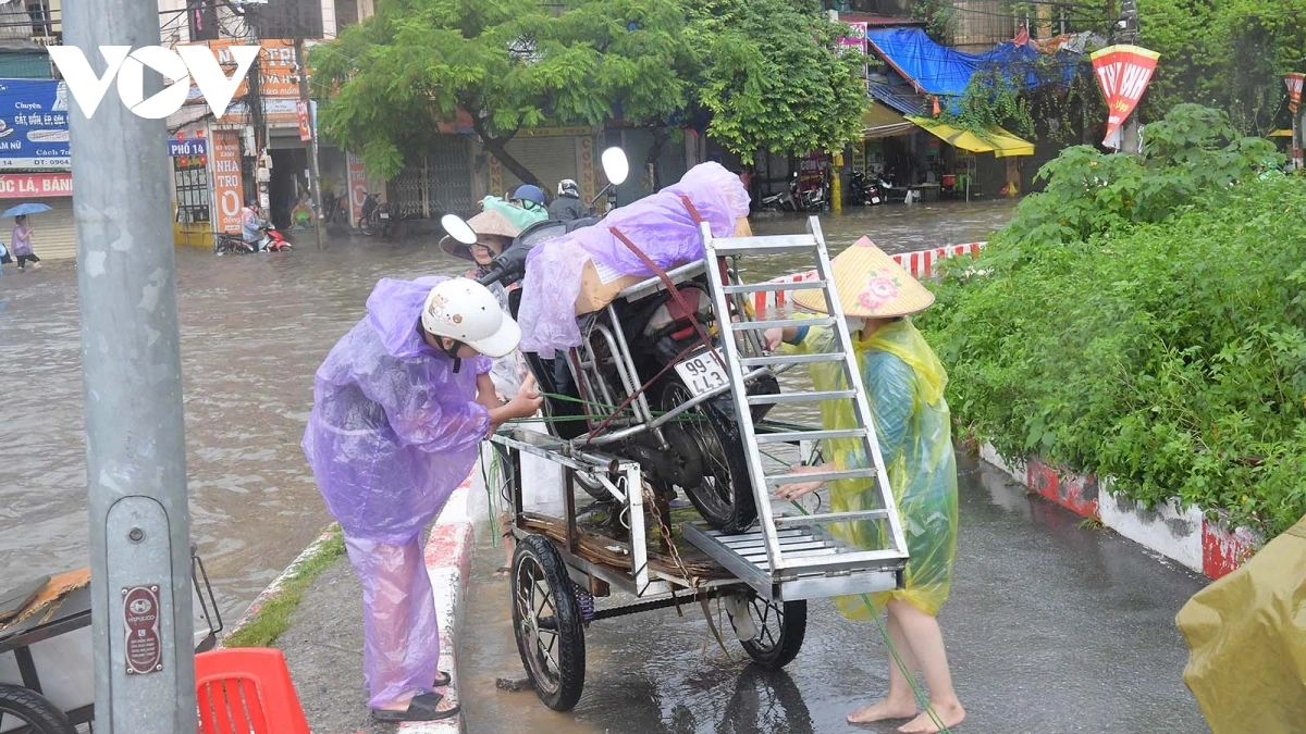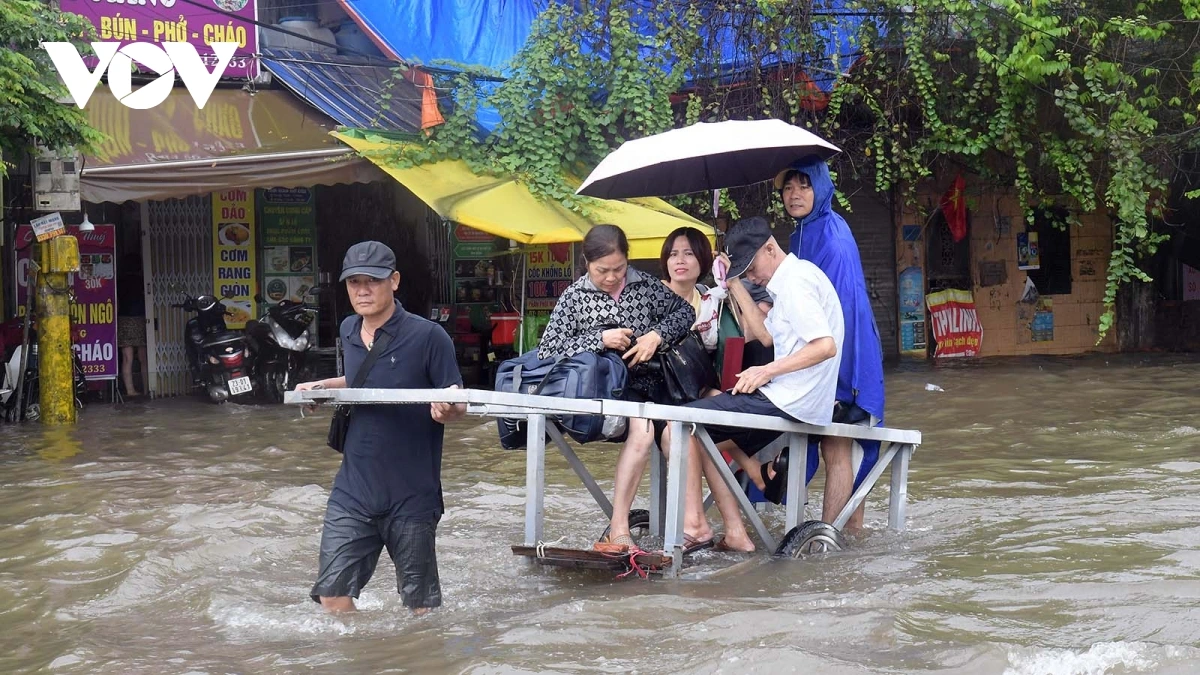 Tại nút giao Phạm Tu - Cầu Bươu - Xa La (Hà Nội) xảy ra ngập sâu, có đoạn ngập tới 1m và kéo dài gần 200m. Nhiều người dân quanh khu vực mang xe kéo tay ra chở người và phương tiện qua khu vực ngập sâu, thu nhập tiền triệu mỗi ngày.