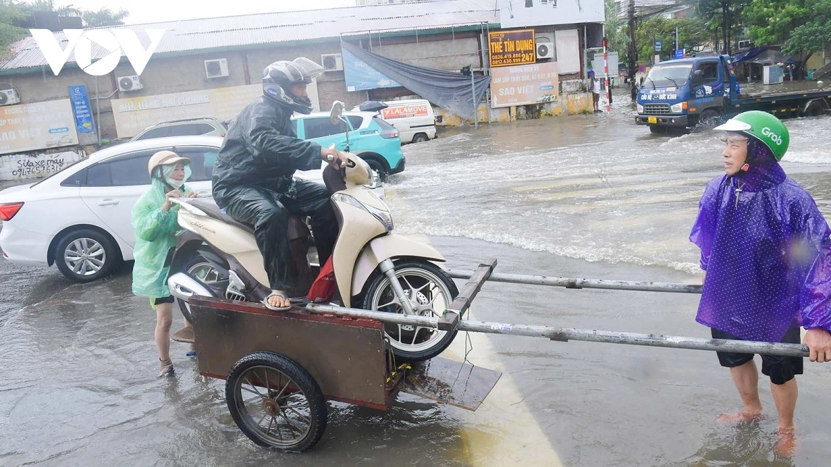VOV.VN - Nhiều người dùng xe kéo tay đưa phương tiện qua khu vực ngập sâu ở Hà Nội thu nhập tiền triệu mỗi ngày