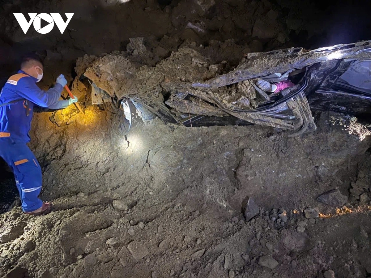 Công tác cứu hộ trong những ngày qua tại đây gặp vô vàn khó khăn do khối lượng đất đá sạt lở lớn và thời tiết thất thường, đòi hỏi phải vừa đảm bảo an toàn cho lực lượng vừa tiến hành giải phóng đất đá. Đến khoảng 0h sáng nay (3/10), lực lượng chức năng mới có thể tiếp cận được chiếc xe bị biến dạng hoàn toàn.